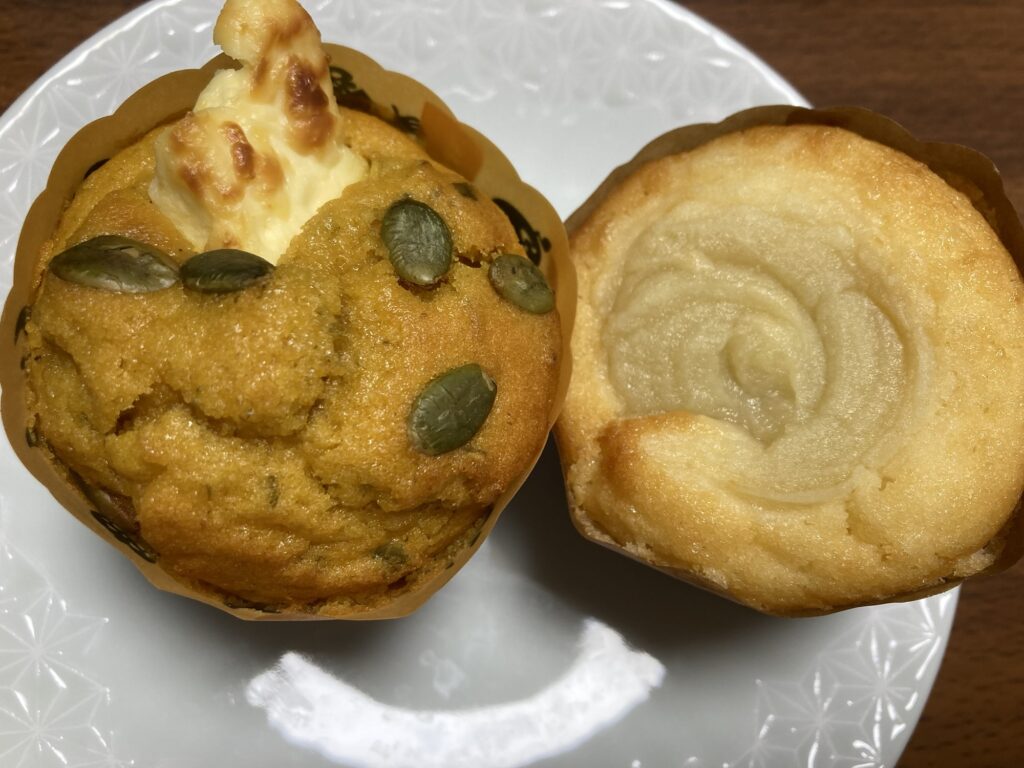 クリームチーズの塩気とかぼちゃ生地の甘味がいいですね。