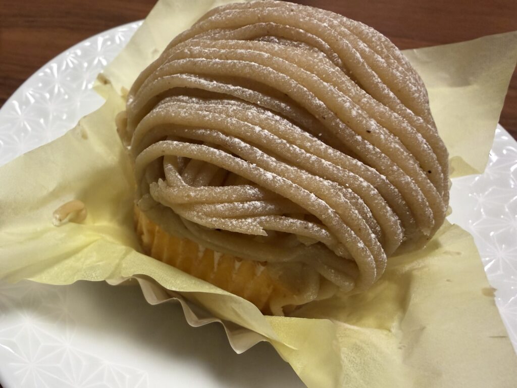 茶色いマロンペーストは洋酒が効いているものも多いですが、これはあまり洋酒を感じないもので、甘さもモンブランにしては抑え気味でちょうどよい甘さでした。